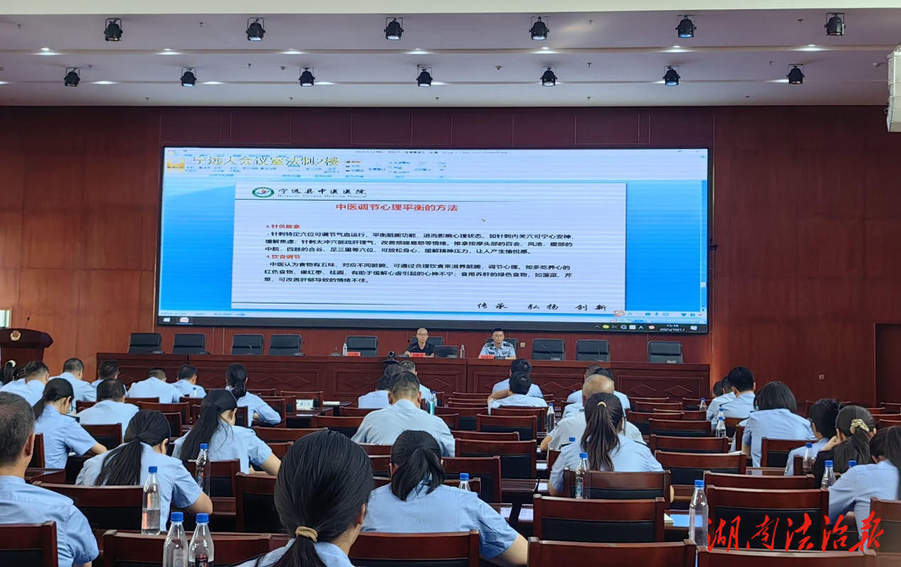 湖南法治報(bào)訊(通訊員 李小陽(yáng))10月17日,寧遠(yuǎn)縣中醫(yī)醫(yī)院走進(jìn)縣公安局,開(kāi)展了一場(chǎng)“重視心理健康——擁抱陽(yáng)光心態(tài)”的心理健康知識(shí)講座,近百名民輔警現(xiàn)場(chǎng)聆聽(tīng)。