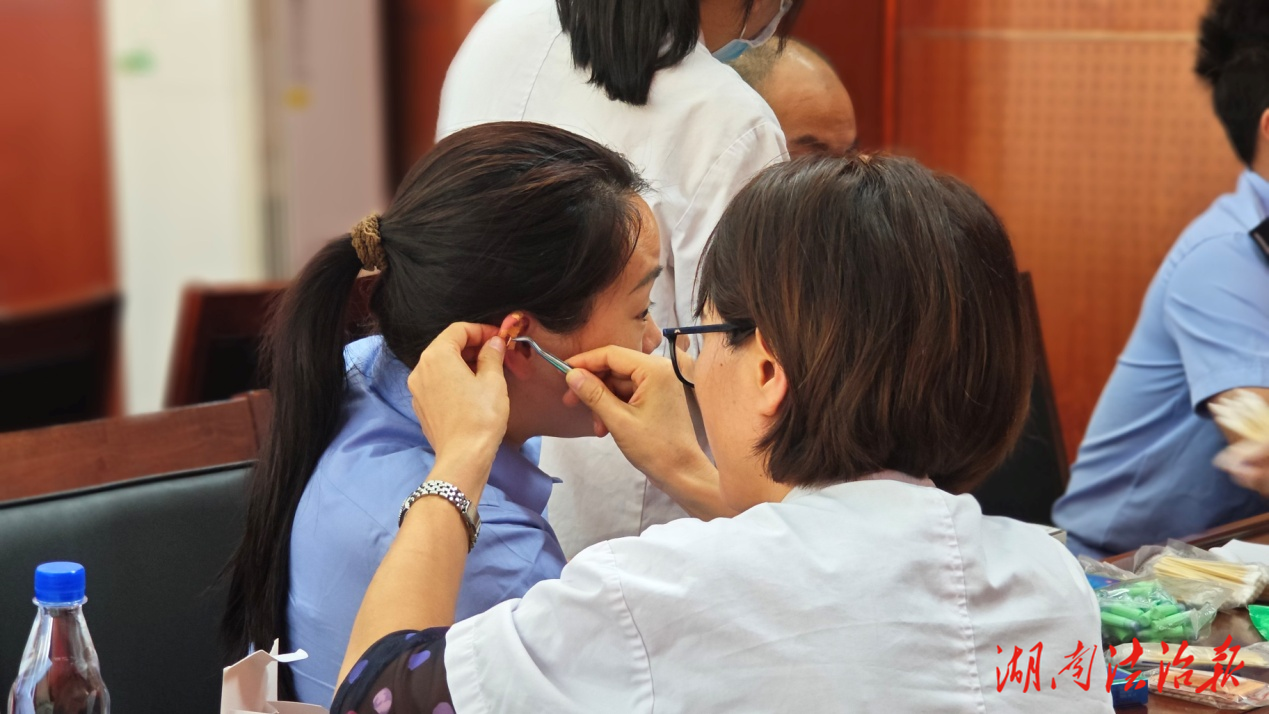 互動(dòng)環(huán)節(jié),治未病體檢科醫(yī)護(hù)人員為與會(huì)人員提供青山耳穴、刮痧等中醫(yī)特色技術(shù)服務(wù),助力大家調(diào)理身體狀態(tài)。