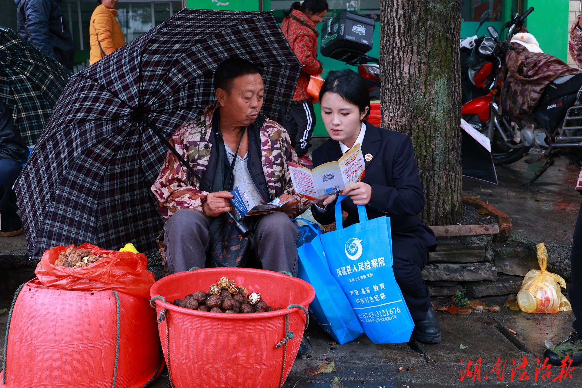雨水沒能阻擋檢察干警的腳步,更沒有減弱群眾參與的熱情。集市上人員密集區(qū)域,醒目的宣傳標(biāo)語懸掛起來,千余份防詐宣傳手冊、法治宣傳袋等資料陸續(xù)發(fā)放到過往群眾和商家手中。這些精心準(zhǔn)備的資料語言樸實,案例生動,很快成為了墟場上的“搶手貨”。