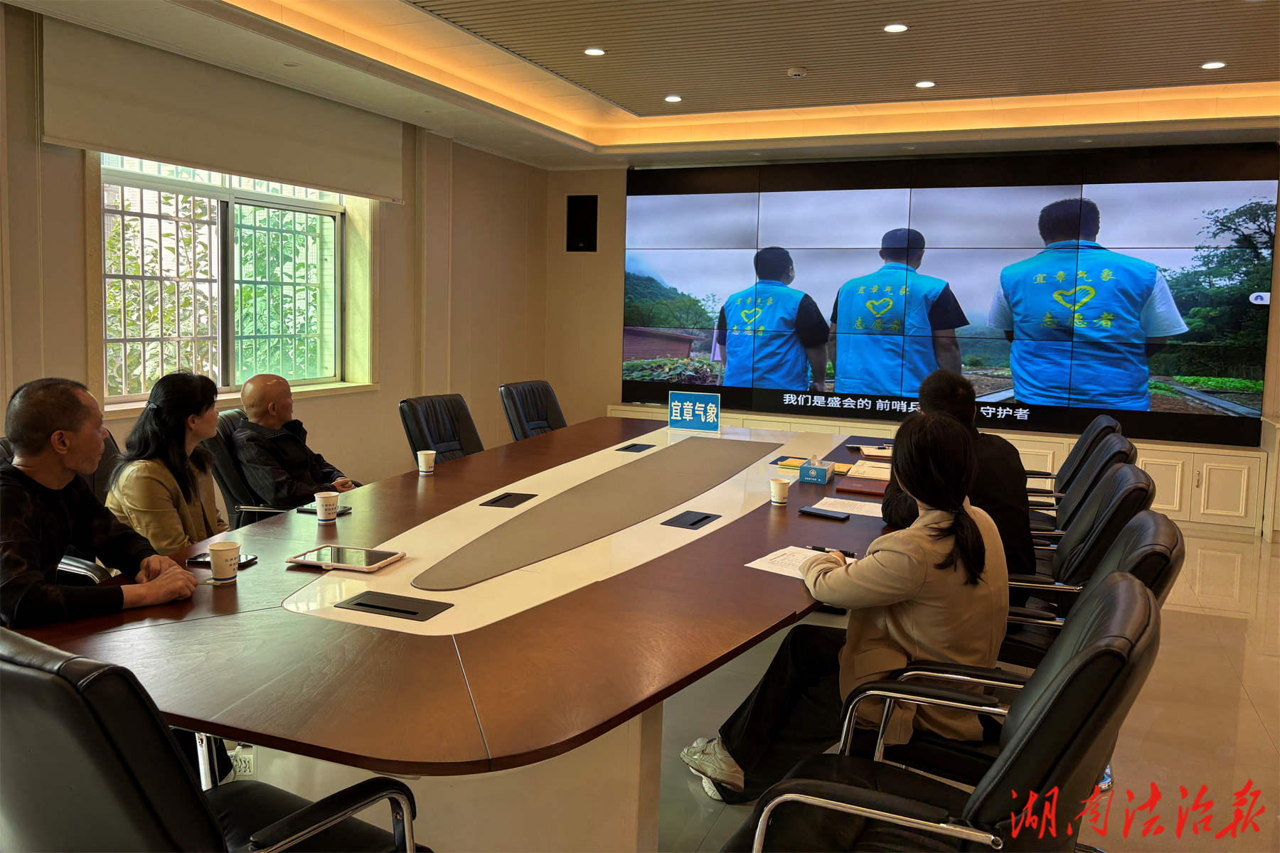▲宜章縣氣象局退休干部們觀看旅發(fā)大會氣象服務(wù)工作的視頻
