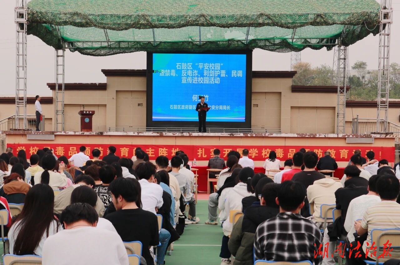 湖南法治報訊(通訊員 汪勛 趙彬伶)?為進一步推進“平安校園”建設(shè),切實增強轄區(qū)廣大師生的法治觀念、安全防范意識和自我保護能力,營造安全、穩(wěn)定、和諧的社會環(huán)境,10月29日,衡陽市石鼓區(qū)“平安校園”暨禁毒、反電詐、利劍護蕾、民調(diào)宣傳進校園活動在衡陽中創(chuàng)商貿(mào)職業(yè)學(xué)校舉行。區(qū)政府副區(qū)長、區(qū)公安分局局長何玉竹出席活動并講話,區(qū)委政法委、黃沙灣街道辦事處、區(qū)社會化禁毒事務(wù)中心、衡陽中創(chuàng)商貿(mào)職業(yè)學(xué)校全體師生共計400余人參加活動。