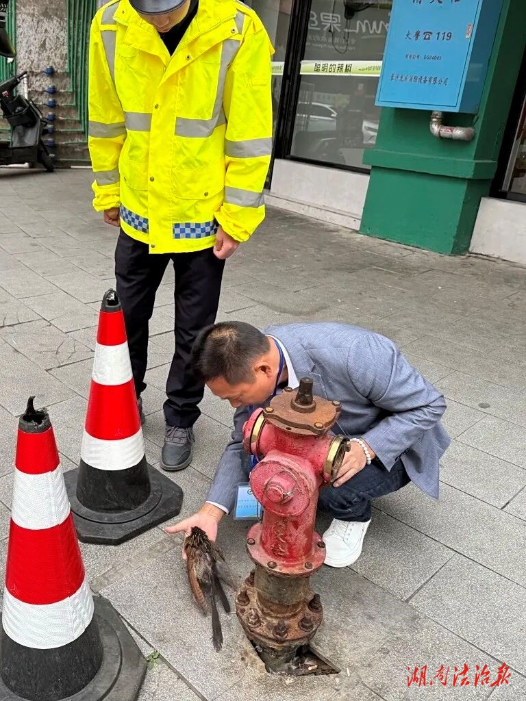 湖南法治報訊(通訊員 龍嘉莉 唐江涓)10月24日清晨7時55分,晨光微熹,秋意漸濃,邵陽縣石齊學(xué)校執(zhí)勤點(diǎn)正值早高峰,執(zhí)勤交警如往常一樣忙碌地疏導(dǎo)著交通,這時,一位行色匆匆的群眾小心翼翼地捧著一只翅膀耷拉的鳥類焦急地走向執(zhí)勤交警。
