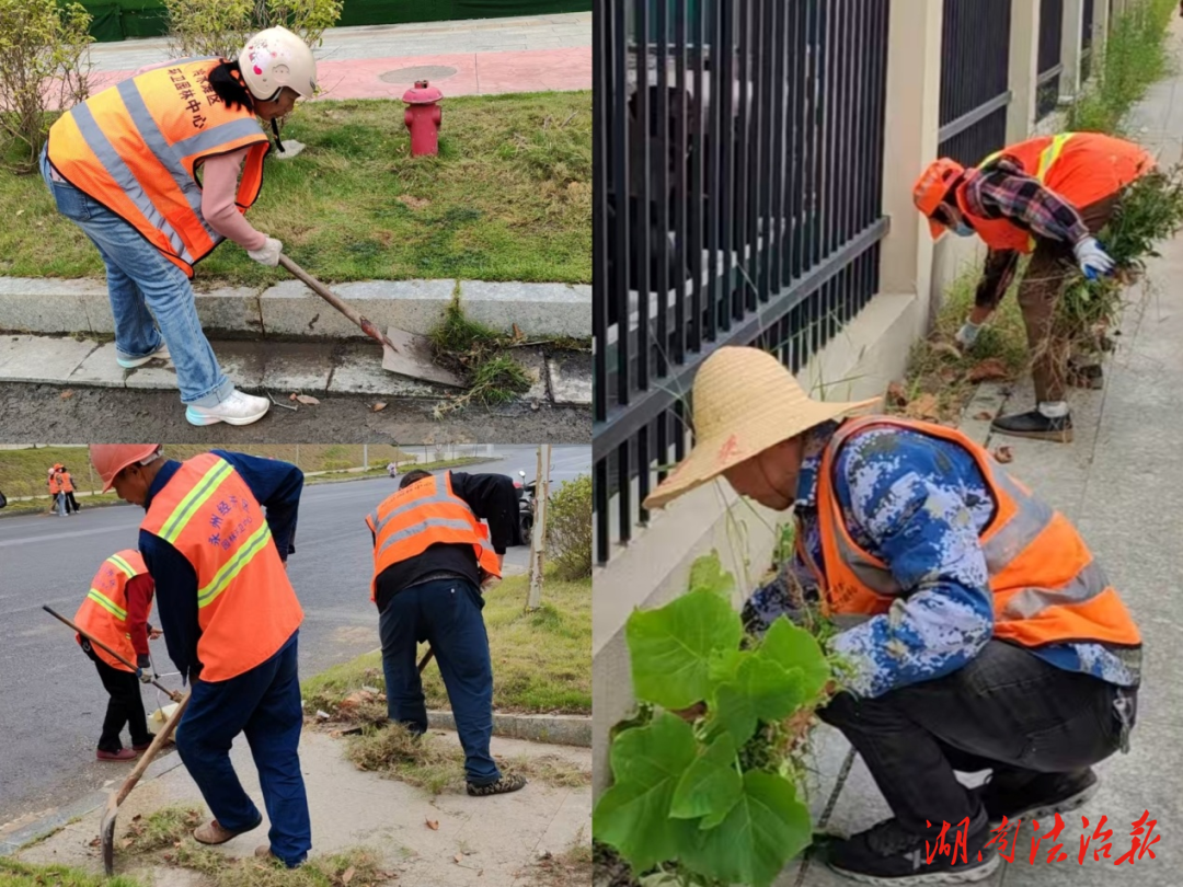 圖為環(huán)衛(wèi)工人全方位無(wú)死角地毯式清撿垃圾雜草