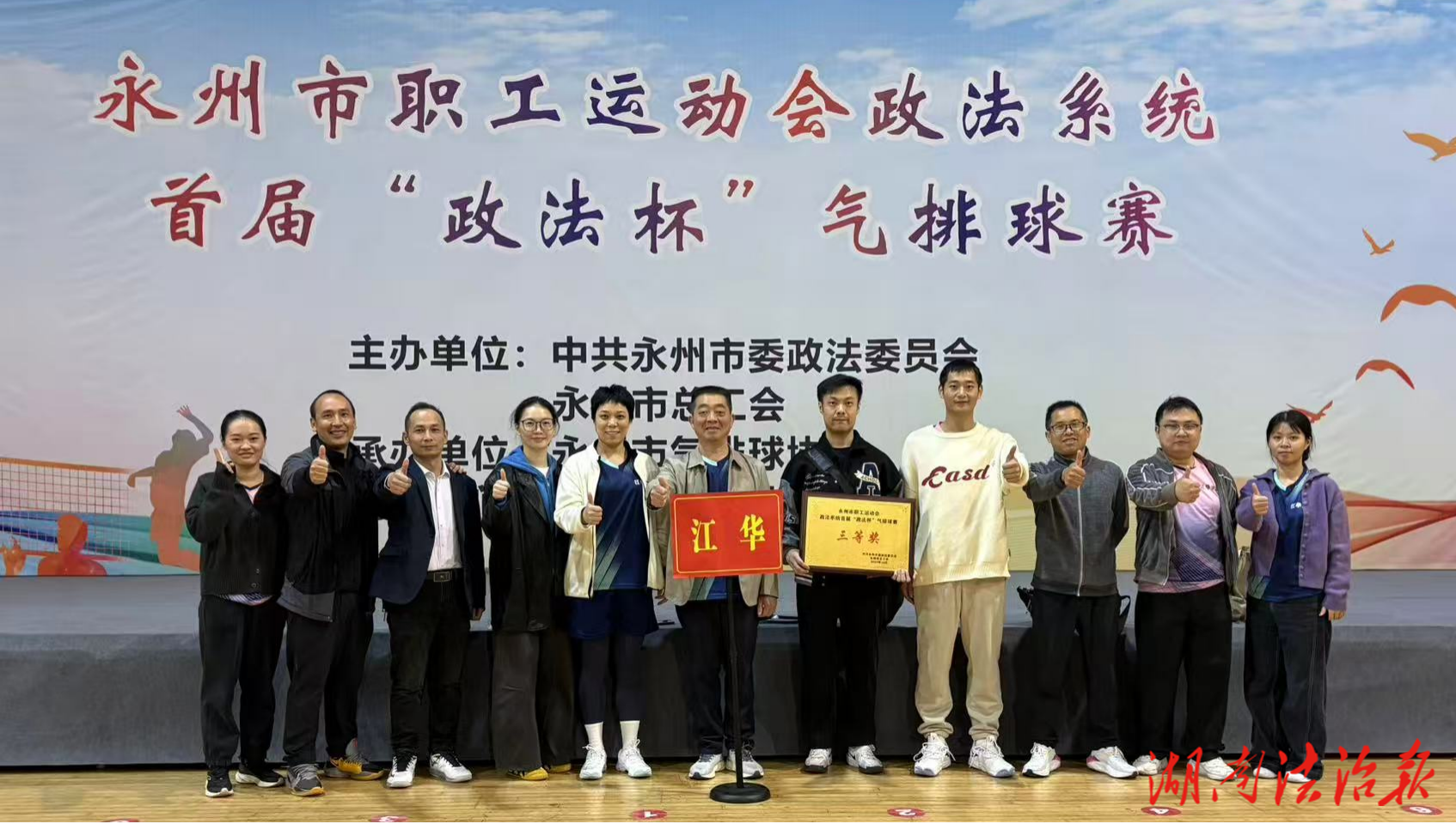 10月30日下午,永州市職工運(yùn)動(dòng)會(huì)政法系統(tǒng)首屆“政法杯”氣排球賽在永州市體育館圓滿落幕,江華縣委政法委代表隊(duì)?wèi){借頑強(qiáng)拼搏的斗志和團(tuán)結(jié)協(xié)作的精神,在兩天的激烈角逐中脫穎而出,最終榮獲此次比賽三等獎(jiǎng)的佳績(jī)。