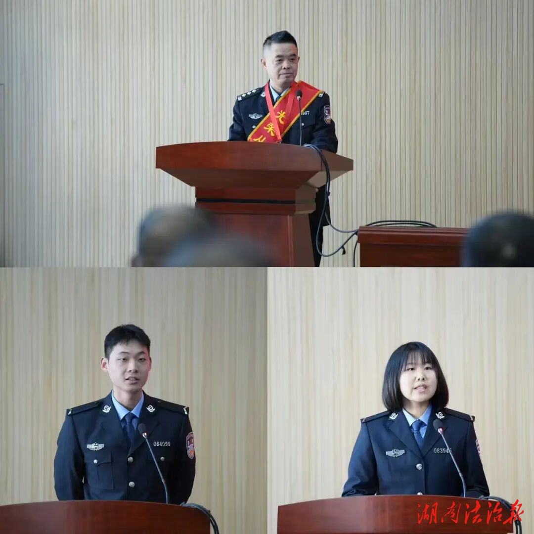 民警代表依次發(fā)言。新警代表朝氣蓬勃,誓言要以老一輩為榜樣,腳踏實(shí)地、砥礪前行,用青春和熱血書寫新時(shí)代公安故事;從警三十年民警代表語重心長,分享了從警生涯的感悟與心得,勉勵(lì)新警們不忘從警初心,牢記職責(zé)使命,在公安崗位上發(fā)光發(fā)熱。
