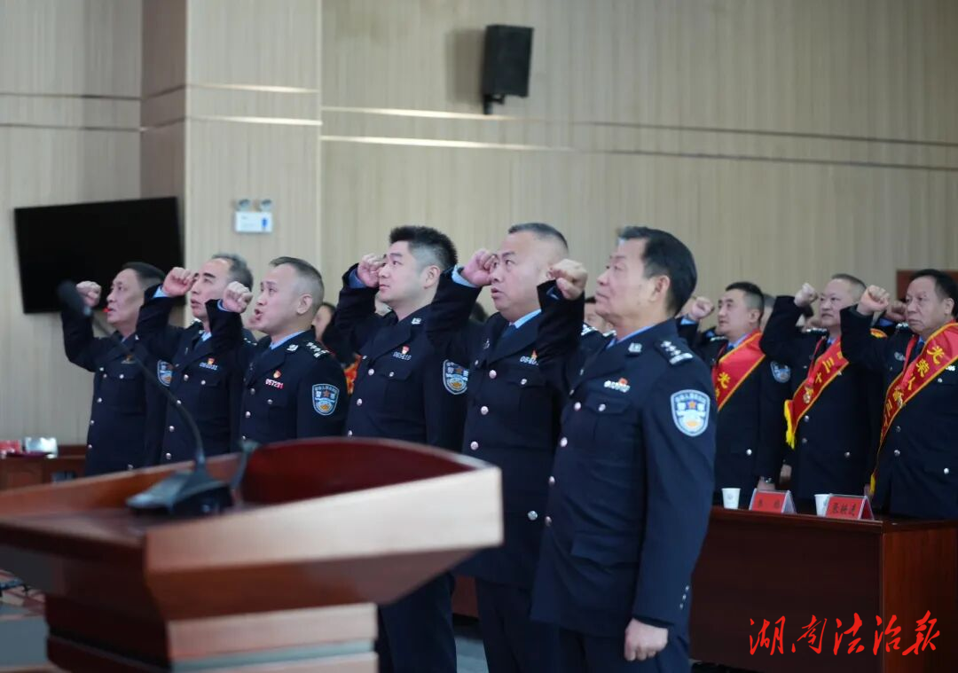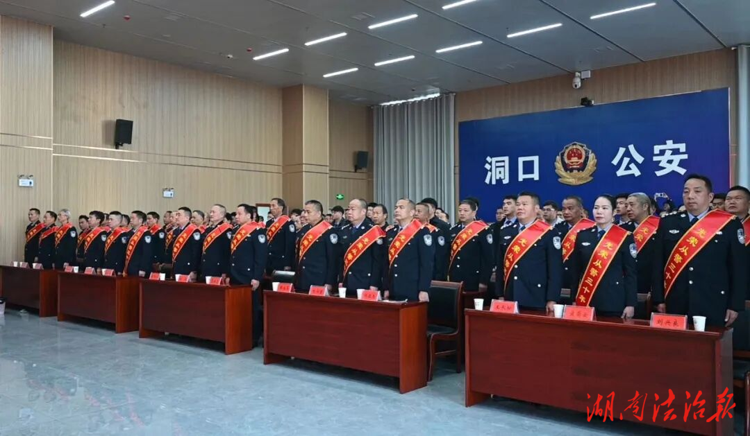 ▲儀式現(xiàn)場錚錚誓言,響徹會(huì)場。全體人員高舉右拳,莊嚴(yán)宣讀人民警察誓詞,字字千鈞,句句鏗鏘,彰顯著洞口公安人對黨忠誠、服務(wù)人民、執(zhí)法公正、紀(jì)律嚴(yán)明的堅(jiān)定信念。