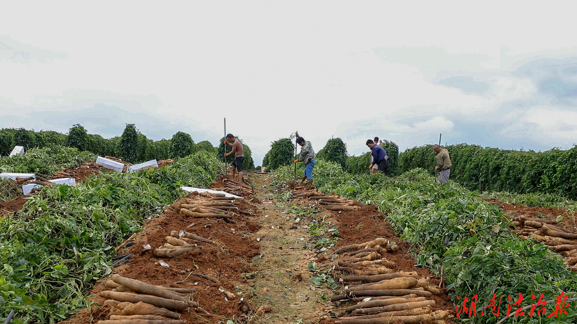 湖南法治報訊(通訊員 陳麗華)時下,江永縣松柏瑤族鄉(xiāng)蓮花崗村的千畝淮山進入采收旺季,連片的淮山地里一片繁忙,村民們分工協(xié)作,倒藤、刨土、采挖、去泥、裝箱,新鮮的淮山被快速整理打包,即將發(fā)往各地市場。