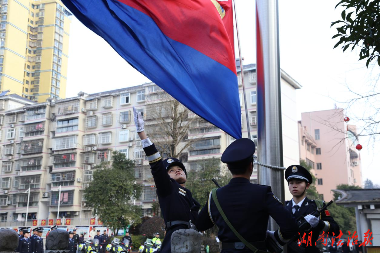 “我是中國(guó)人民警察,我宣誓:堅(jiān)決擁護(hù)中國(guó)共產(chǎn)黨的絕對(duì)領(lǐng)導(dǎo),矢志獻(xiàn)身崇高的人民公安事業(yè)……”鏗鏘有力的誓言字字千鈞、響徹天際,表達(dá)了全體民輔警對(duì)黨、對(duì)祖國(guó)、對(duì)人民的無(wú)限忠誠(chéng)與為公安事業(yè)奮斗終身的堅(jiān)定決心。古丈縣委書記滕朝輝出席并致辭,縣委副書記陳明燈,縣委常委、縣委辦主任王申強(qiáng)出席升警旗儀式。縣人民政府副縣長(zhǎng)、縣公安局黨委書記、局長(zhǎng)李劍帶領(lǐng)全局300余名民輔警參加儀式。