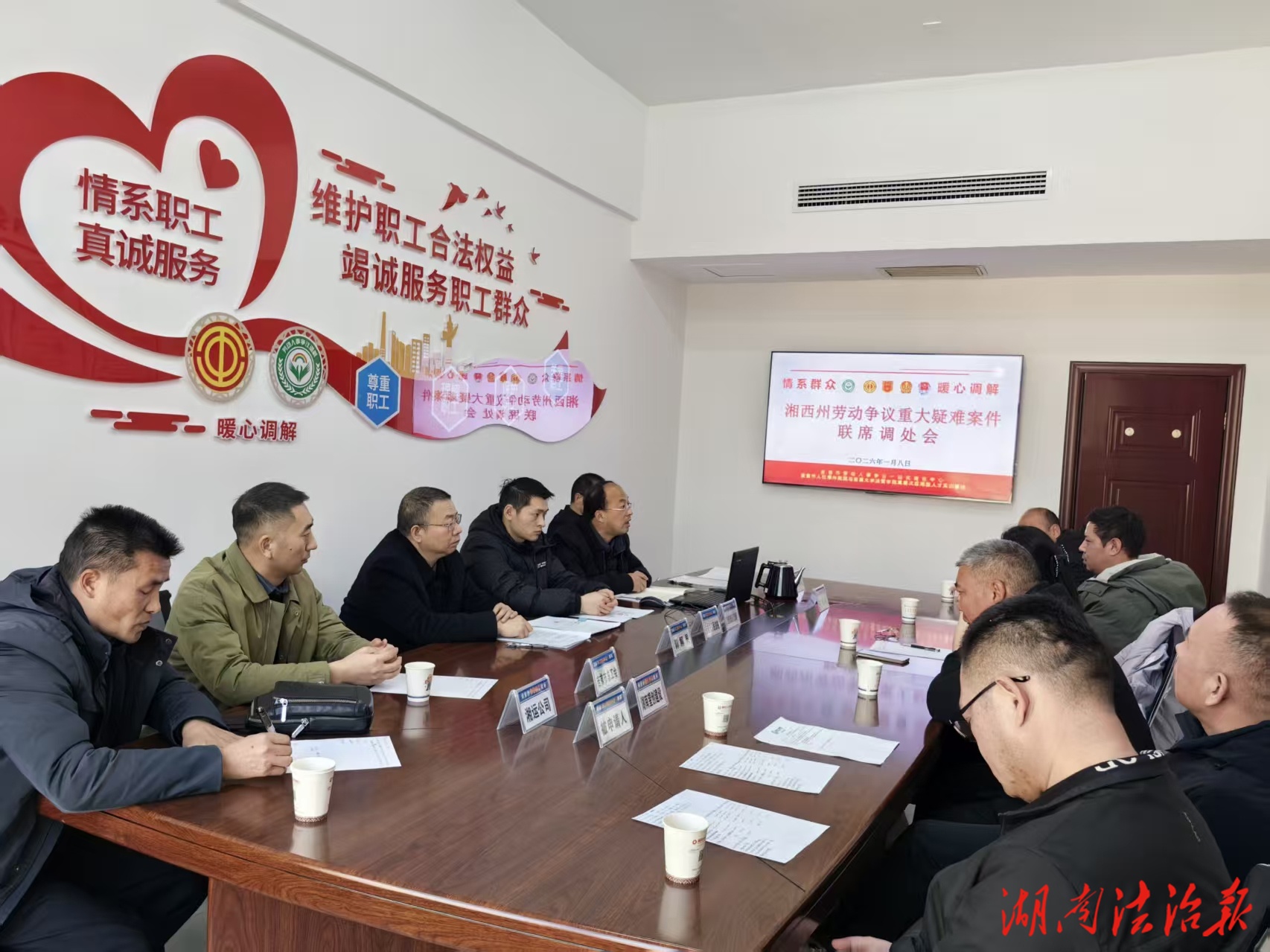 湖南法治報訊(通訊員 楊秀杰 吳國杉 楊媛媛)新年伊始,湘西州新時代“楓橋經驗”實踐與“工會+人社+法院+司法+”多元化解工作實現(xiàn)“開門紅”。1月8日,在湖南省湘西自治州吉首市勞動人事一站式調處中心,州市總工會牽頭,州市人社局仲裁院、法院、司法局等多部門共同參與的首次聯(lián)席調處機制推動下,一起涉及殘疾賠償與勞動報酬的重大疑難案件得到成功化解。當事人各方在調解現(xiàn)場握手言和,標志著州市聯(lián)動的新時代“楓橋經驗”實踐與“工會+人社+法院+司法+”多元化解機制邁出堅實一步。