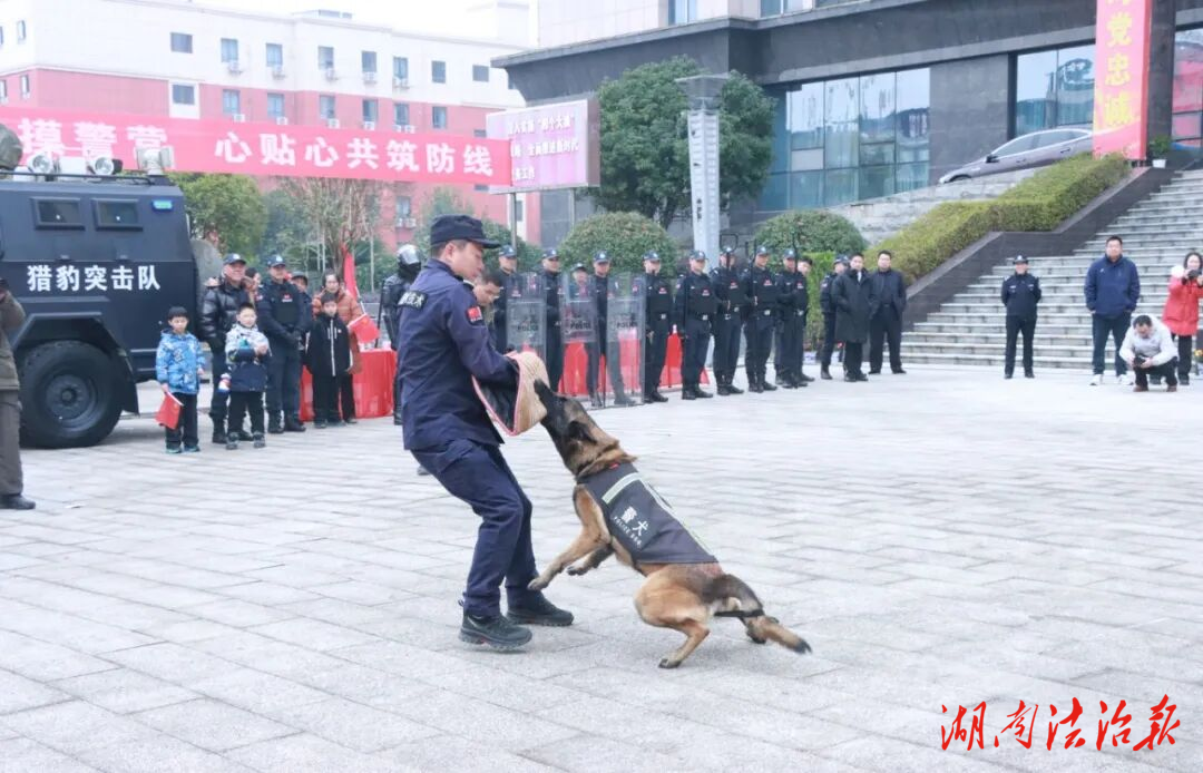 在局大樓前坪,一系列精彩紛呈的警務(wù)展示輪番上演,讓同學(xué)們目不暇接、大呼過癮。警犬表演堪稱“吸睛亮點”,在訓(xùn)導(dǎo)員戴文斌的指令下,警犬們動作敏捷、反應(yīng)迅速,搜救、撲咬等科目表現(xiàn)精準利落,時而威風(fēng)凜凜、時而溫順聽話,引得同學(xué)們陣陣歡呼;巡特警大隊展示的警用無人機演示同樣令人矚目,無人機在空中靈活盤旋、精準懸停,同學(xué)們直觀感受科技賦能警務(wù)的強大力量;緊接著,擒敵拳表演震撼登場,巡特警隊員們精神抖擻、動作剛勁有力,一招一式盡顯公安民警的過硬本領(lǐng),展現(xiàn)出維護社會治安的堅定決心;緊張刺激的反恐演練更是將現(xiàn)場氣氛推向高潮,隊員們默契配合、反應(yīng)迅速,逼真的場景模擬讓同學(xué)們深刻體會到民警在危險面前挺身而出的勇敢與擔(dān)當,也對公安工作的艱辛有了更真切的認識。