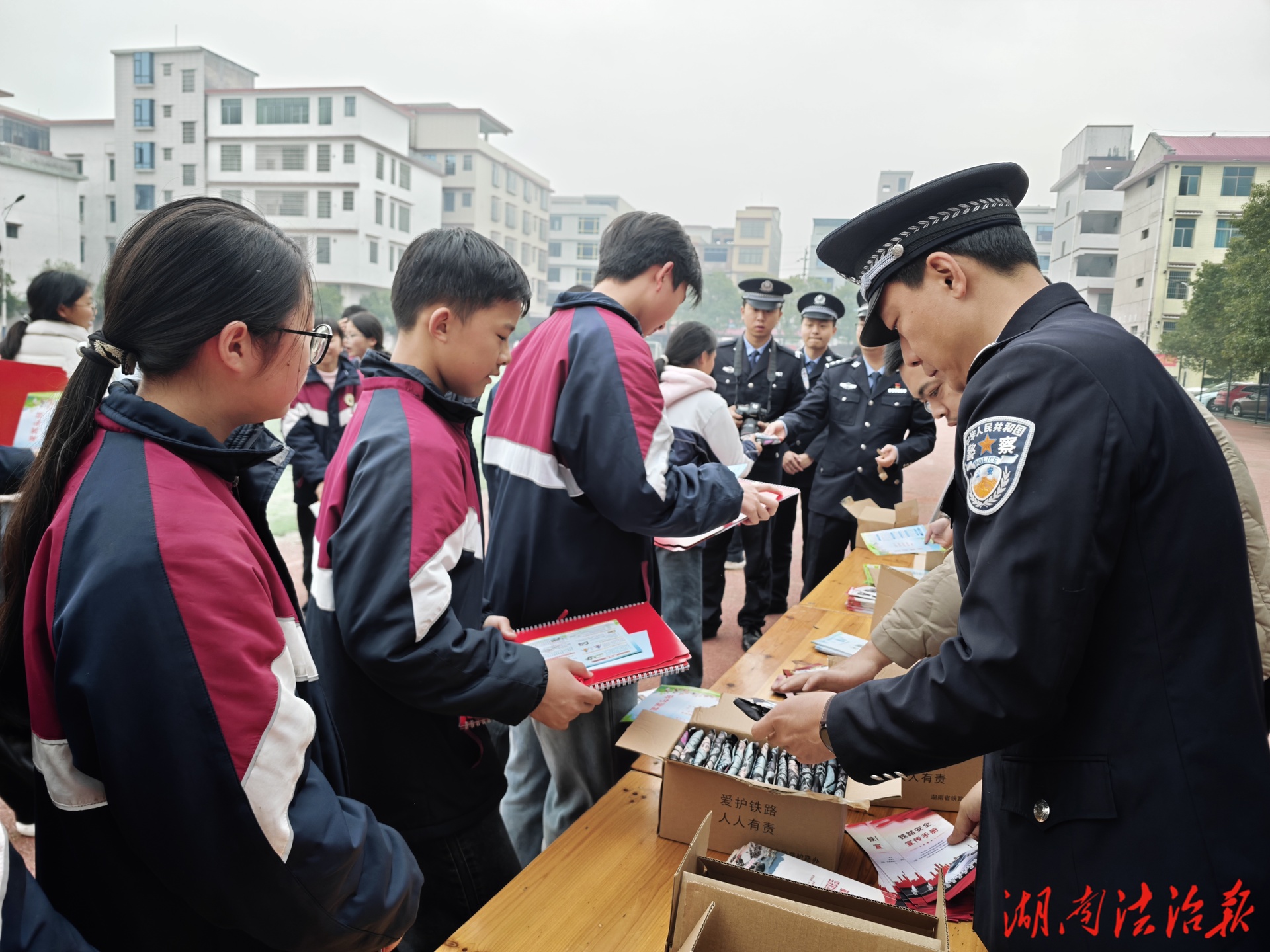 湖南法治報(bào)訊(通訊員 黃淑君)為進(jìn)一步加強(qiáng)校園法治安全教育,提升青少年法治觀念與自我保護(hù)意識,營造安全、文明、和諧的校園環(huán)境,1月16日,縣委政法委聯(lián)合高鐵洞口站派出所工作人員深入竹市鎮(zhèn)中學(xué)開展了一場以“愛路護(hù)路、反電詐、禁毒、利劍護(hù)蕾”為主題的綜合宣傳教育活動,學(xué)校1100余名師生參加活動。