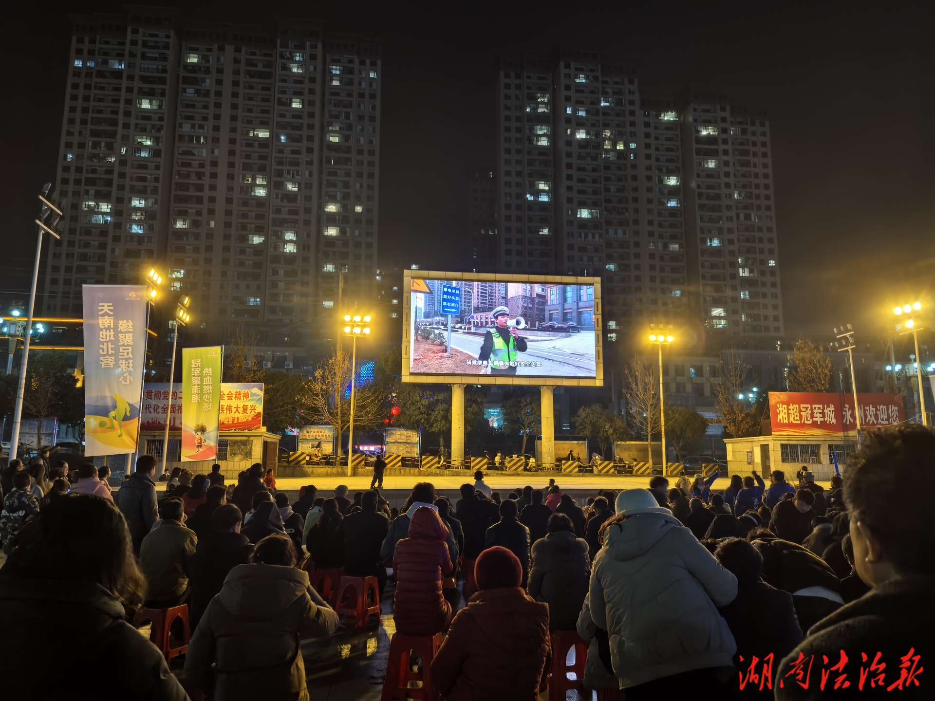 湖南法治報(bào)訊(通訊員 曾慶屏)2026年CMG群眾足球邀請(qǐng)賽在湖南省永州市舉辦期間,藍(lán)山縣市政廣場(chǎng)設(shè)立的“第二現(xiàn)場(chǎng)”觀賽點(diǎn)人氣高漲,吸引眾多市民駐足。藍(lán)山縣公安局交通管理大隊(duì)緊抓賽事契機(jī),于中場(chǎng)休息時(shí)段通過現(xiàn)場(chǎng)大屏幕播放本土化交通安全宣傳片,將觀賽熱情轉(zhuǎn)化為一堂生動(dòng)的交通安全教育課。