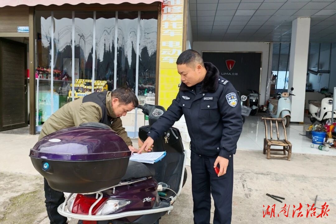 湖南法治報訊(通訊員 谷小琴)為遏制假期學(xué)生騎乘摩托車、電動車違規(guī)飆車現(xiàn)象,消除道路交通安全風(fēng)險,自2月2日起,桑植縣公安局交警大隊組織開展“學(xué)生假期摩電違法亂象專項整治行動”,對全縣摩托車、電動車維修店及二手銷售門店開展全覆蓋檢查,從源頭整治交通安全隱患。