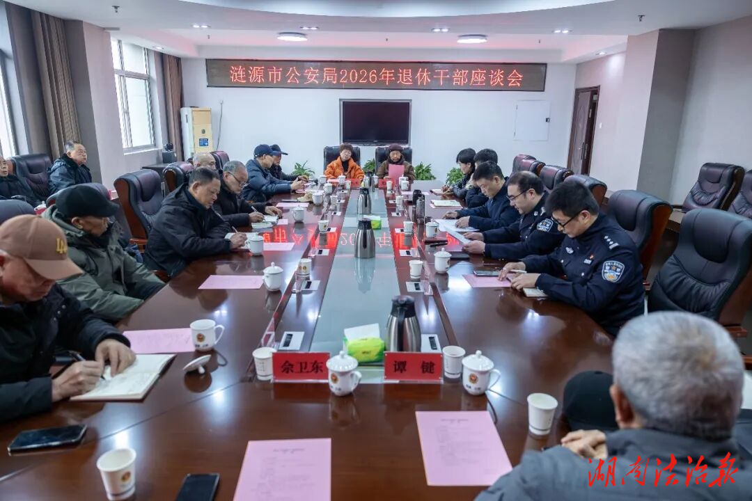 湖南法治報訊(通訊員 肖淋)在2026年新春佳節(jié)即將來臨之際,2月5日,漣源市公安局召開離退休干部座談會。副市長、市公安局長提名人選佘威,市公安局黨委副書記、政委楊鴻輝,市公安局黨委委員、政工室主任吳紅兵與退休干部黨支部、離退休干部代表歡聚一堂,共敘情誼、共話發(fā)展、共迎新春。