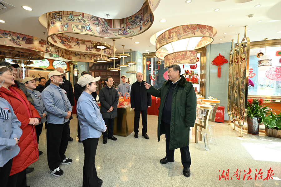 2月9日至10日,中共中央總書記、國家主席、中央軍委主席習近平在北京考察并看望慰問基層干部群眾。這是10日上午,習近平在東城區(qū)隆福寺街區(qū)的稻香村糕點店考察。